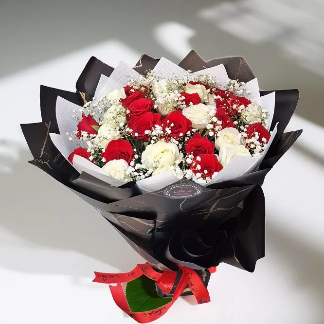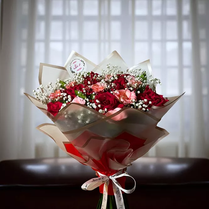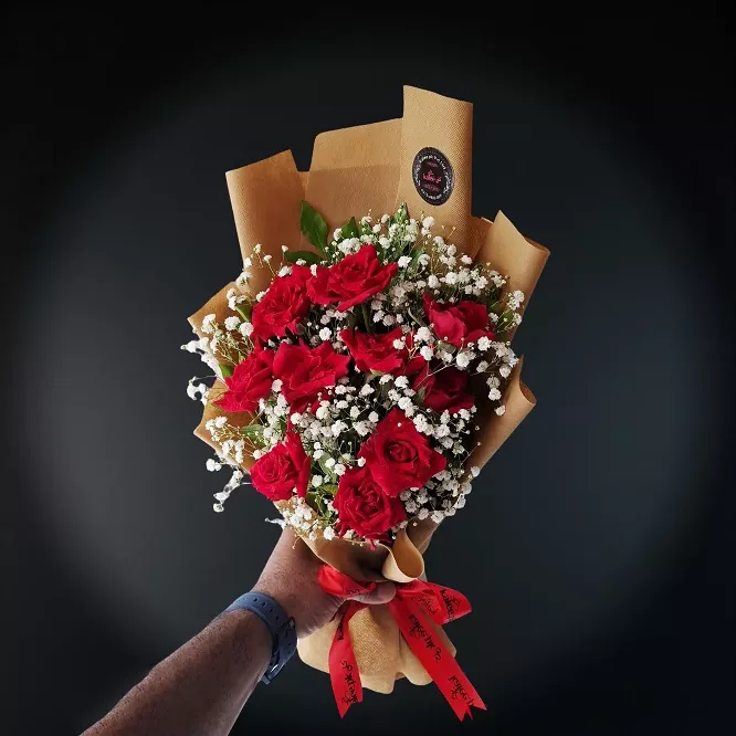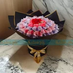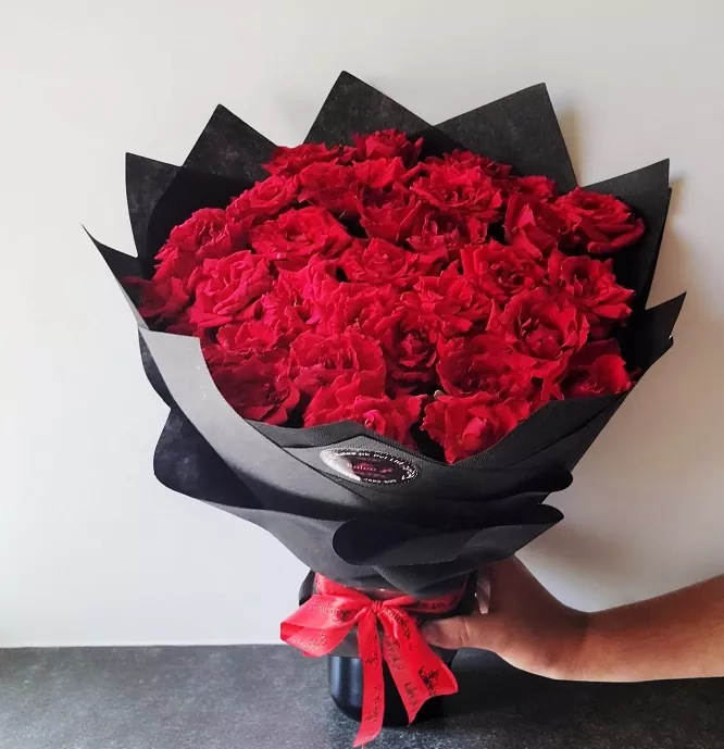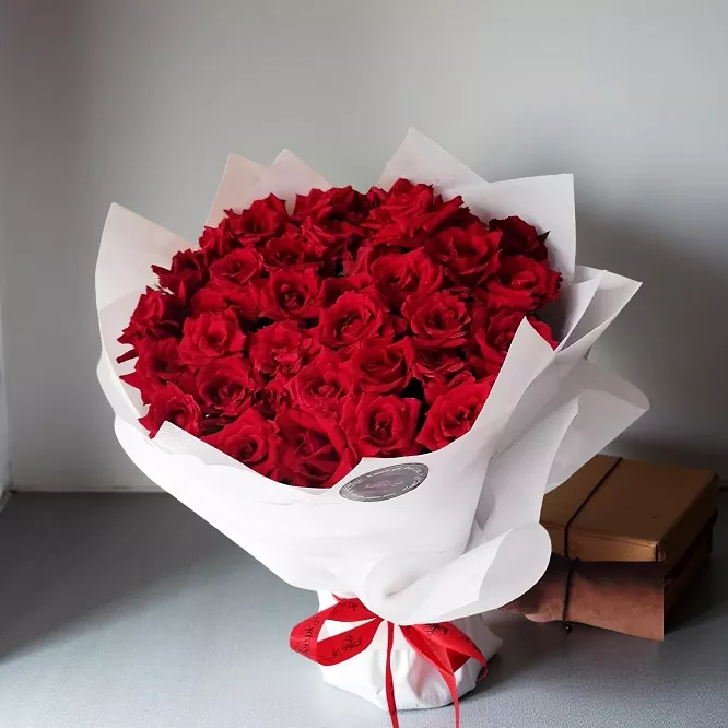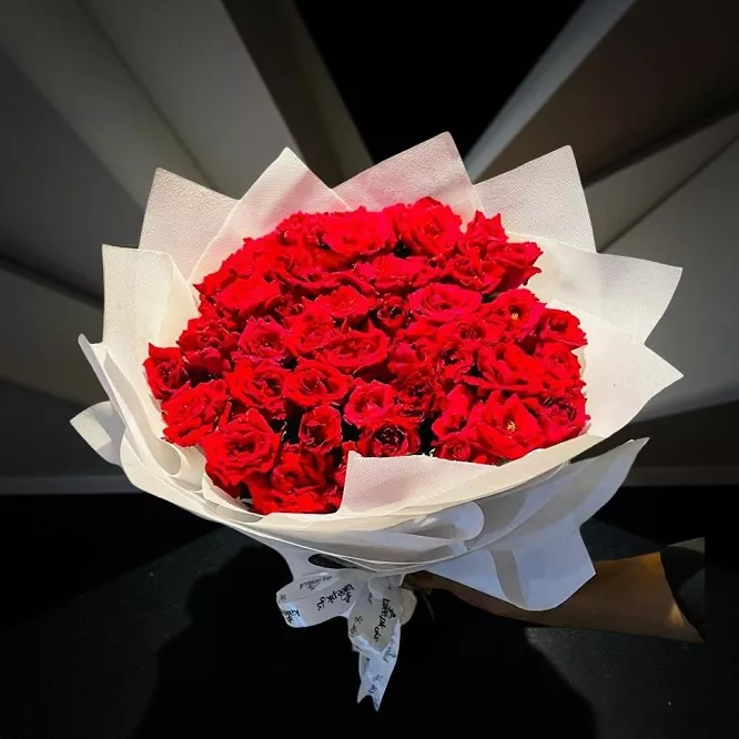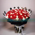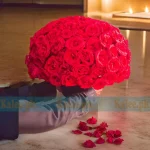 A grand, opulent arrangement of 100 premium red rose flowers, handpicked at peak bloom. Wrapped in sleek, high-quality paper. Perfect gesture for unforgettable moments.