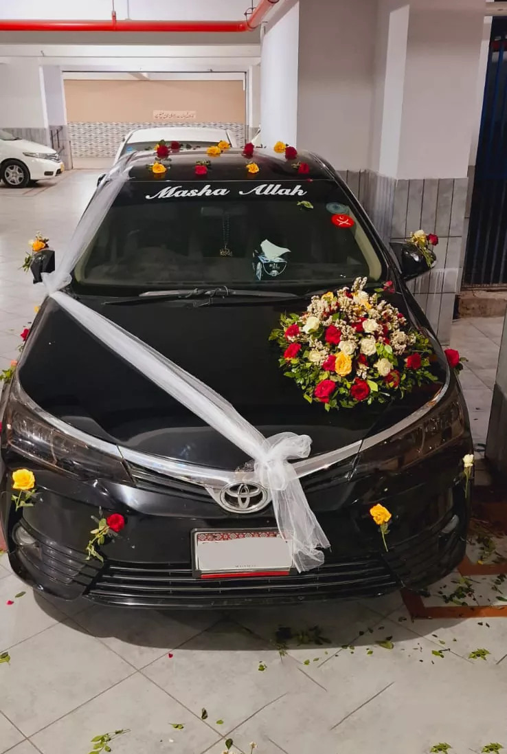 Corolla Car Decoration With Roses & Statice