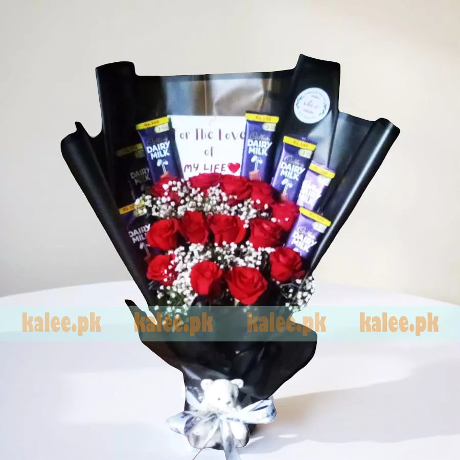 Dairy Milk Bouquet With Baby’s Breath & Roses