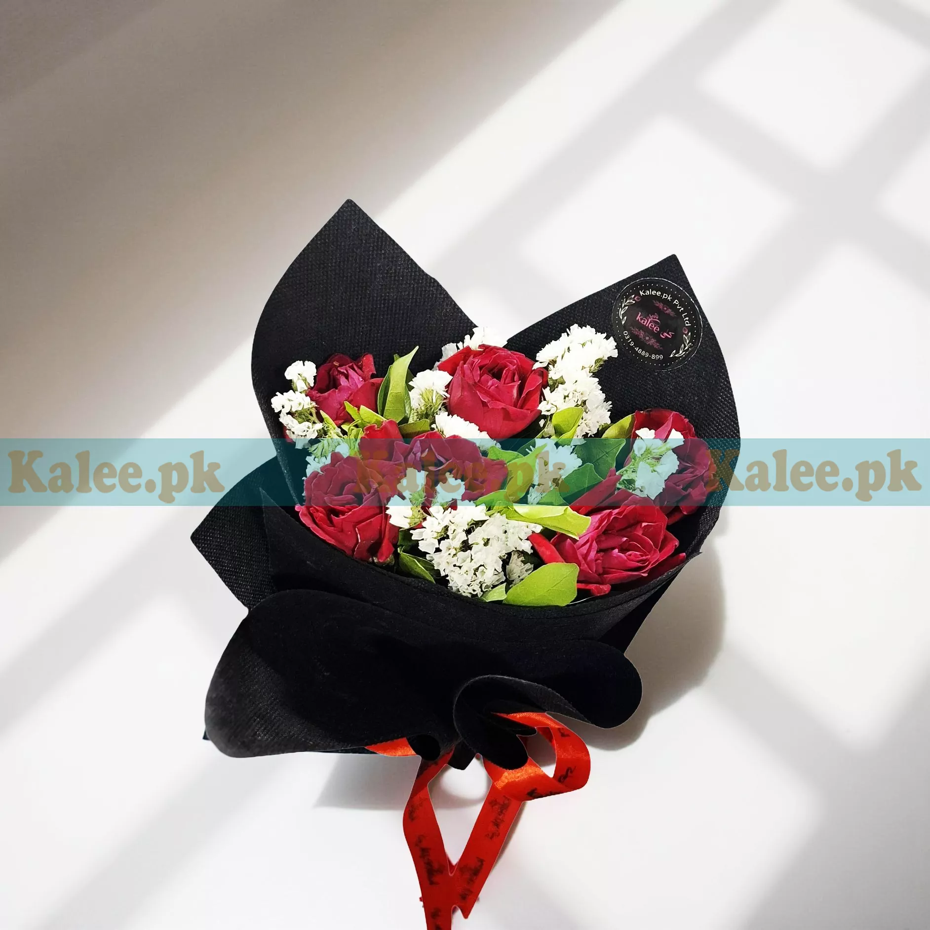 Experience the timeless beauty and elegance of fresh blooms with this stunning handheld bouquet, exclusively curated by Kalee.pk, your trusted Karachi flower shop. This bouquet is a perfect blend of vibrant red roses, lush greenery, and delicate white statice flowers, all meticulously arranged and wrapped in premium transparent floral paper. Whether you’re celebrating a special occasion or simply expressing your heartfelt emotions, this bouquet radiates warmth, affection, and sophistication.