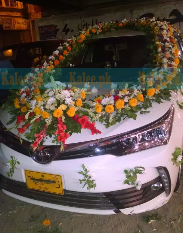 Glades And Marigold Wedding Car Decoration