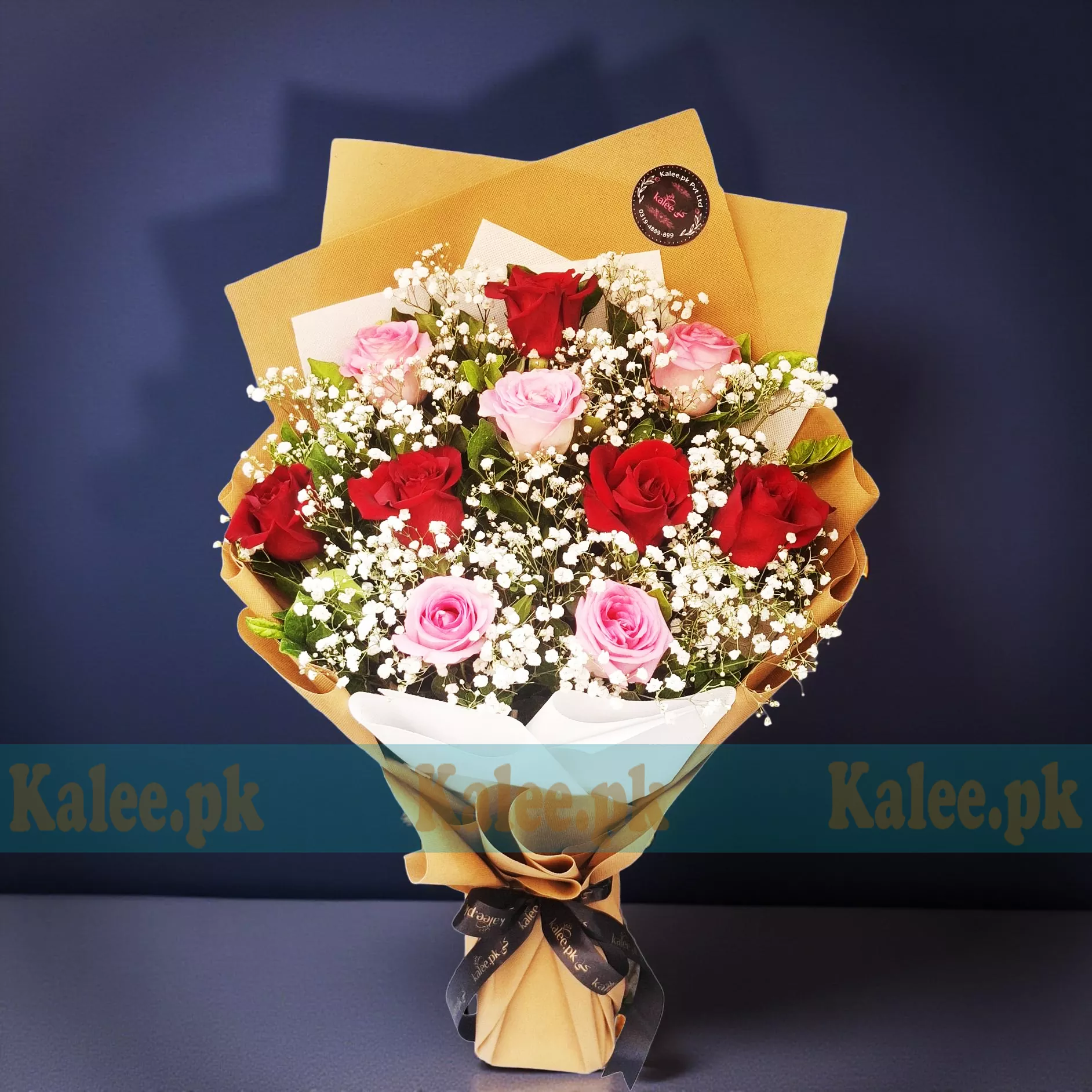 Imported Pink & Red Roses Bouquet With Baby’s Breath