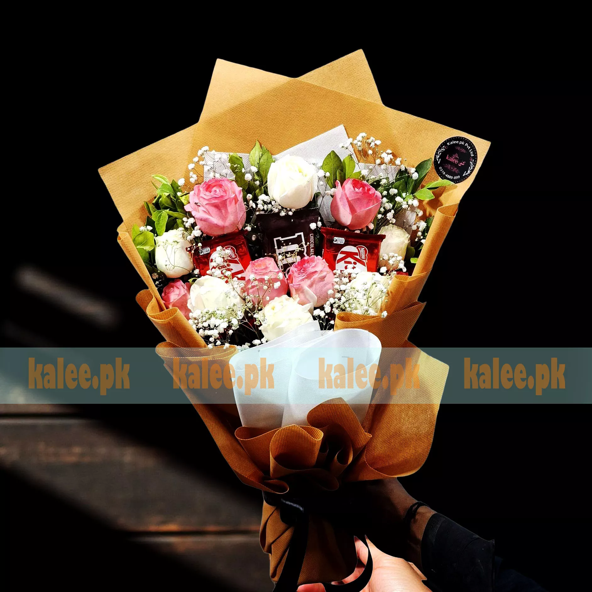 Imported Roses Baby’s Breath & Chocolates Bouquet
