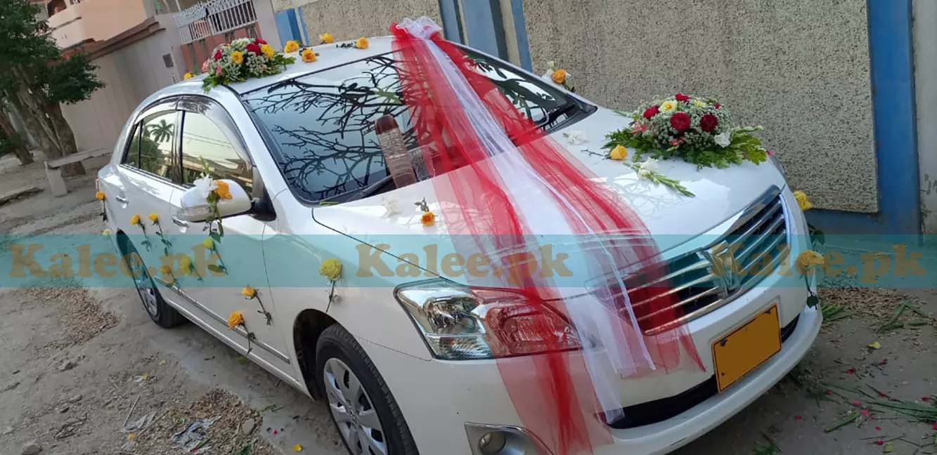 Red And Yellow Roses Wedding Car With Lacy Lace